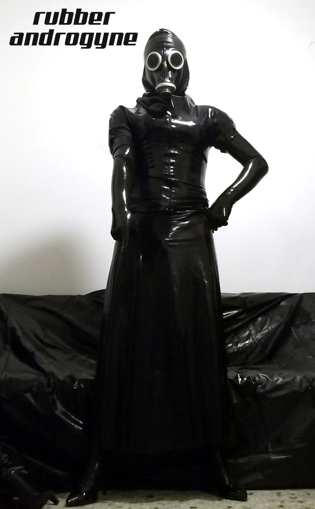 Bizarre rubber androgyne.Black shinning tight transformations from head to toe.Kneel and worship.