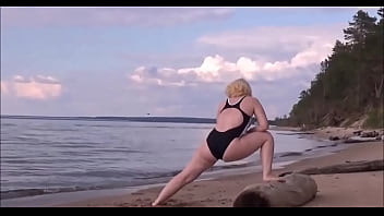 Stepmom on the beach pees and shows her ass 5 मिनट