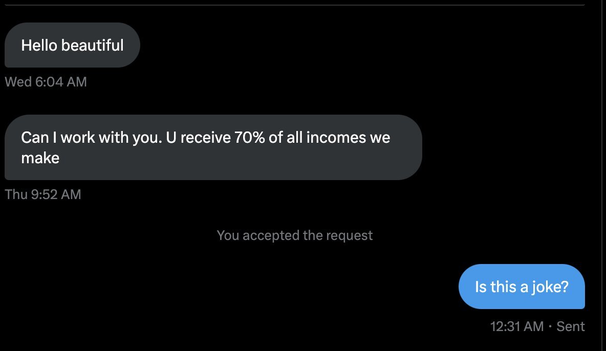 I don’t respond to messages that say ‘Hey,’ ‘wya,’ ‘avail’ or any other low-effort messages.