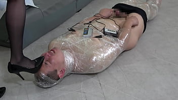Japanese domina Reika wraps the man around in wrap, turns him into a mummified state, and gives a facesitting and inserting bougie 86 सेकंड