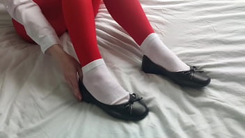 Valentines Day in red pantyhose, white socks and shoes - Hot Video 13 सेकंड
