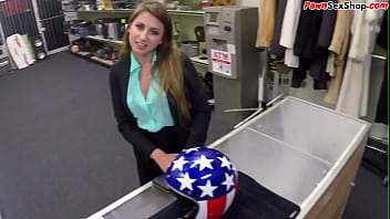 Busty pawnshop babe rubs clit before pov bj in shop 5 मिनट